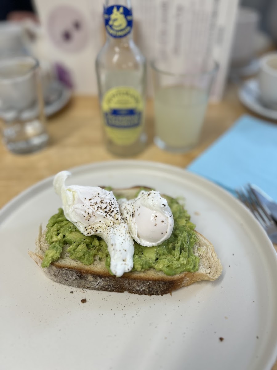 For lunch options, the cafe features delightful dishes such as the mouth-watering smashed avocado with perfectly poached eggs on fresh local bread, as noted by Flic Wright.